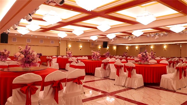 鉑金大廳—色彩濃烈,現(xiàn)代式裝修,面積560㎡,層高6米,開合大屏配合舞美燈光,唯美震撼,可承接30桌的中型宴會(huì);12米長的可移動(dòng)T臺(tái)收起后,就變成了可容納400人同時(shí)落座的大型多功能會(huì)議室。